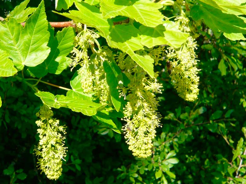 Au printemps, l’érable sycomore produit de petites fleurs verdâtres en grappes pendantes. Ces fleurs ne sont pas particulièrement voyantes, mais elles sont importantes pour la reproduction de l’arbre.