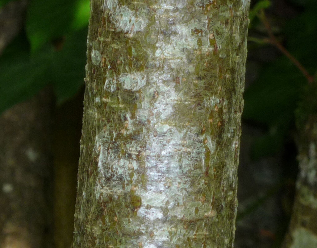 À mesure que l’arbuste vieillit, l’écorce devient plus rugueuse et se fissure longitudinalement.